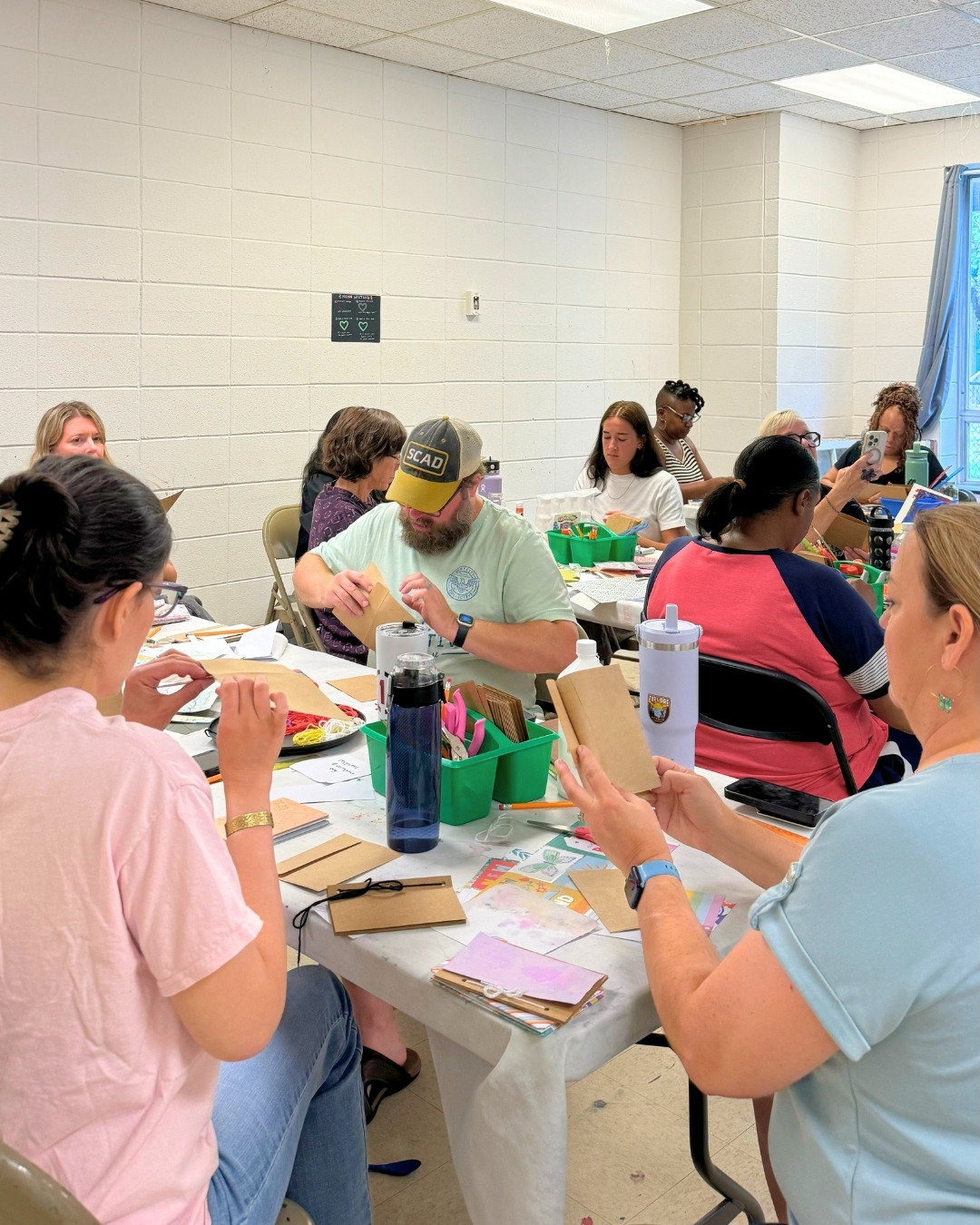 Elementary teachers participated in two sessions—Elementary Arts Lab, one of Arts+’s signature offerings, a literacy-integrated visual arts experience designed for early learners in kindergarten through 5th grade that focuses on fine motor skills and critical thinking; and Bookmaking, featuring simple, budget-friendly techniques that can easily be implemented in the classroom. Beyond technique, the session highlights creative ways these books can be used across disciplines—serving as sketchbooks in art class, journals in literacy lessons, or portfolios for student reflection.